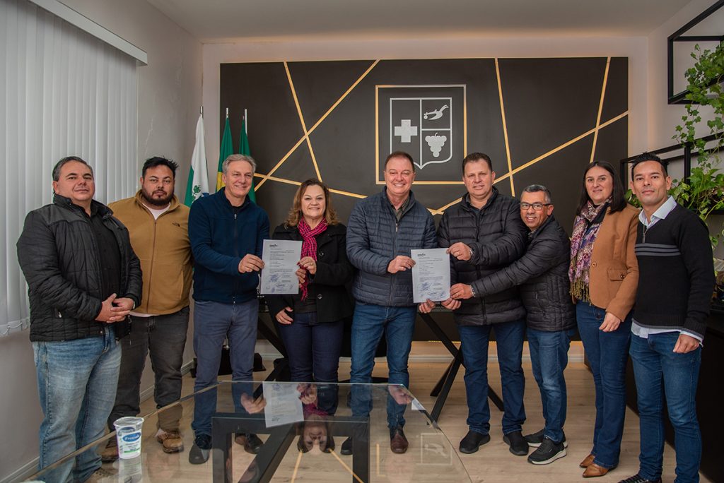 As ordens de serviço foram assinadas para a Rua Padre Francisco Bonato e Travessa Sebastião Guarise.