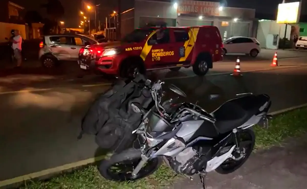 Um jovem motociclista de 23 anos sofreu ferimentos graves após se envolver em um acidente com um carro em São José dos Pinhais, na Região Metropolitana de Curitiba.