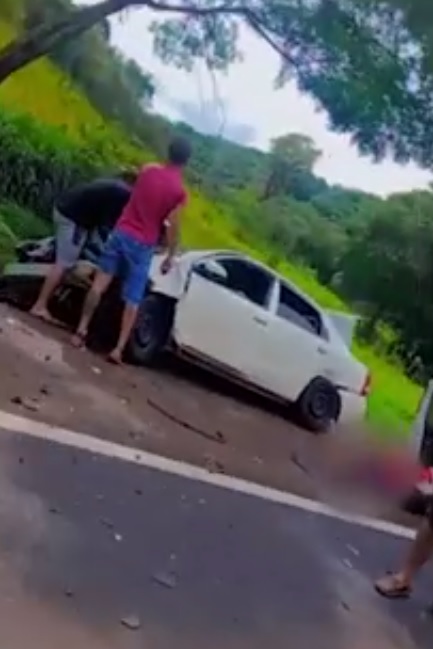Os veículos envolvidos no acidente foram um automóvel Citroen C4 branco, uma camioneta Ford prata e um automóvel Toyota Etios branco.