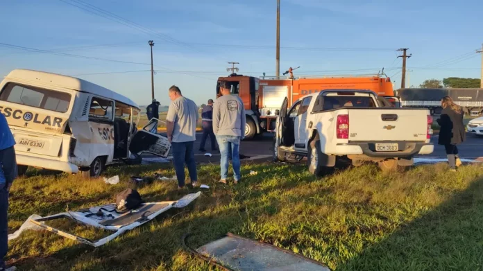 Um homem morreu em uma colisão envolvendo uma kombi de transporte escolar e uma caminhonete no km 449,8 da BR-369, em Ubiratã, na manhã de segunda-feira, 15 de maio.