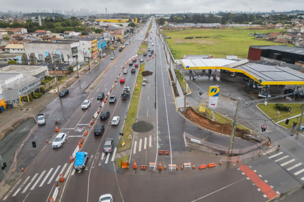 O tráfego na Avenida Victor Ferreira do Amaral, no sentido Pinhais-Curitiba, será desviado para a marginal recém-implantada devido às obras do viaduto Curitiba-Pinhais – Foto: Isabella Mayer/SECOM